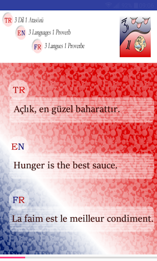 The proverbs and sayings, which are common in 3 languages (English, French and Turkish), are sometimes used in different ways and sometimes in the same way. The people of these three societies have expressed themselves more or less similar in similar ways. These expressions may come to exist solitary or they were moved to other languages through transitions between cultures.