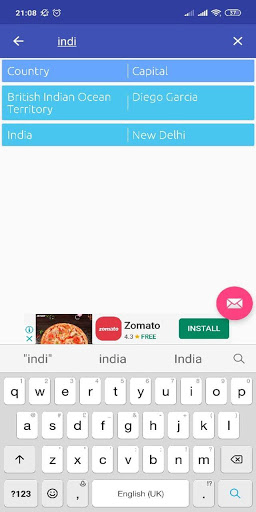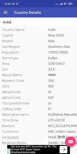 Simply just download this app and start typing any country name and the app will start suggeting the name then select the country name which you want to more about.