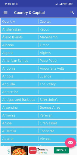 CountryInfo App is very useful for all the person who loves to know basic information of any country, also this app is very useful for educational purpose and for general knowledge . To Know The Country Information like Country Name,Capital,President,Prime minister,Language,Currency and many more things related to any country in the world.