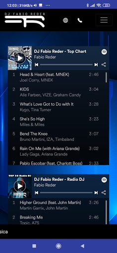 Acesso direto aos playlists do Spotify, Instagram, site e parceiros de Fabio Reder.