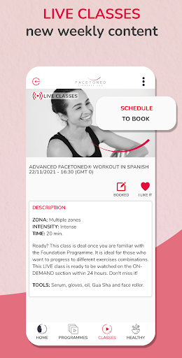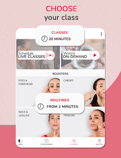 Give yourself a natural facelift! Transform your face and beauty routine with Pilates-based technique personalised programmes, weekly live and on-demand classes taught by Carme Farré, booster videos by areas of the face to lift your cheeks, jawline and eyes.