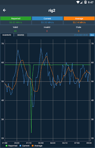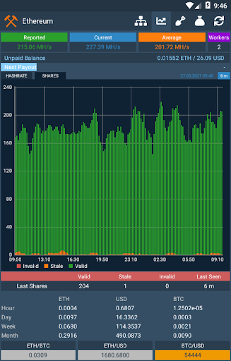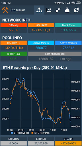 ✔ Show Crypto and BTC Rewards chart from your current/average hashrate speed