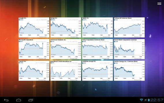 As an example, have a look at screenshot No.3 - it shows a collage of twelve Yahoo Finance stock quote charts taking up an entire home screen.