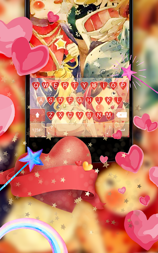 keyboard themes??. It Truly makes your keyboard look unique and beautiful. The theme is based on pink and red color, which is goes so well with most chatting app interfaces??. The heart shaped buttons and fairytale picture base makes you feel like living in a fairytale every time when you look at your keyboard.