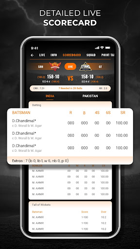 We provide a detailed live scorecard where you can show all details of Batsmen and Bowlers live stats, Batsman name, Runs Scored, Balls Faced, Fours, Sixes, Strike Rate with auto refresh facility.