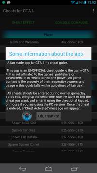 This app is an UNOFFICIAL cheat guide to the game GTA 4. It is not affiliated to the games' publishers or developers. It is meant to help the player. All game content is the property of their respective owners, and usage in this guide falls within guidelines of "fair use".