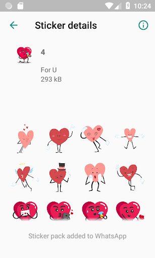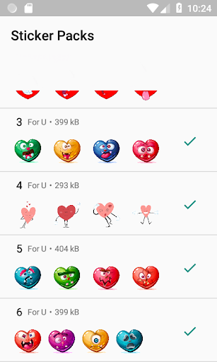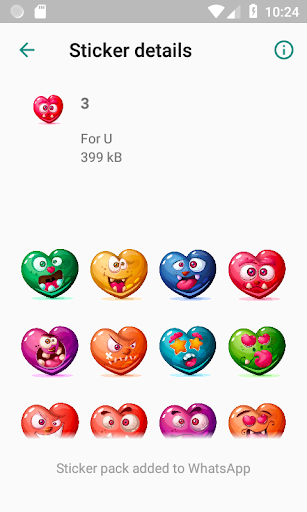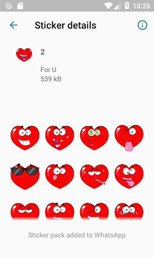 This Application contains thousands of stickers like funny heart stickers,funny stickers and funny hearts stickers for WhatsApp,hearts and emotions adnd crazy hearts, funny face stickers also Beautiful stickers, Cute Love with stickers in addition to Emoticon stickers,Stickers for couple moreover to Short Love of stickers.