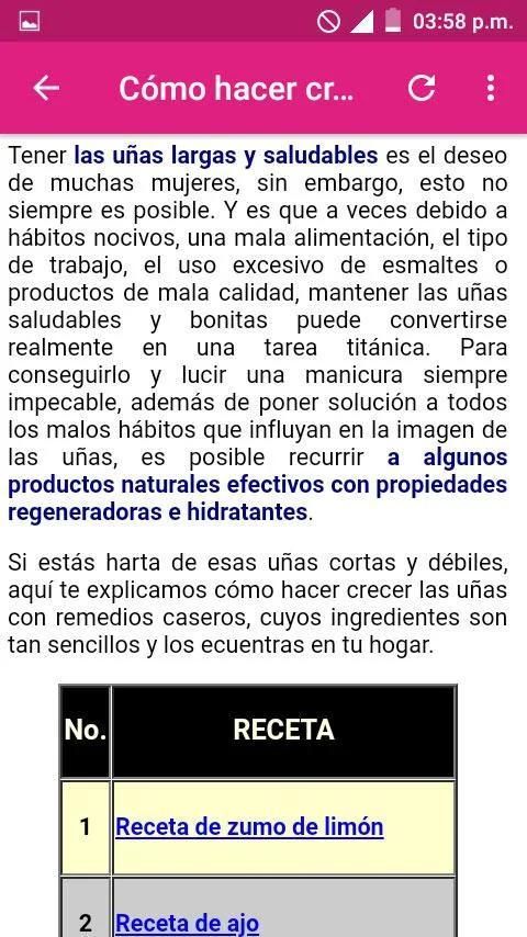 * Cómo hacer crecer tus uñas: Encontrarás los mejores remedios caseros para acelerar el crecimiento y fortalecimiento de tus uñas ejemplo: receta de zumo de limón, receta de ajo, receta de ajo y limón, receta de cola de caballo, etc.