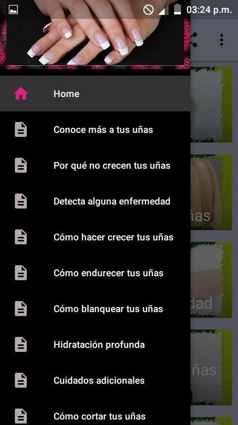 In this app you will find the best beauty tricks for your hands and you will know all the topics related to the nails of hands and feet since it is well known that having long and healthy nails, is the desire of many women, however, this does not It is always easy to get it. And is that sometimes due to bad habits, poor diet, the type of work or excessive use of glazes or poor quality products, keeping your nails healthy and beautiful can really become a difficult task. To get it and show off a manicure (manicure) or pedicure (pedicure) always impeccable, in addition to solving all the bad habits that influence the image of the nails, it is possible to resort to some very effective natural products with regenerating and moisturizing properties, the same ones that you find easily in your home.