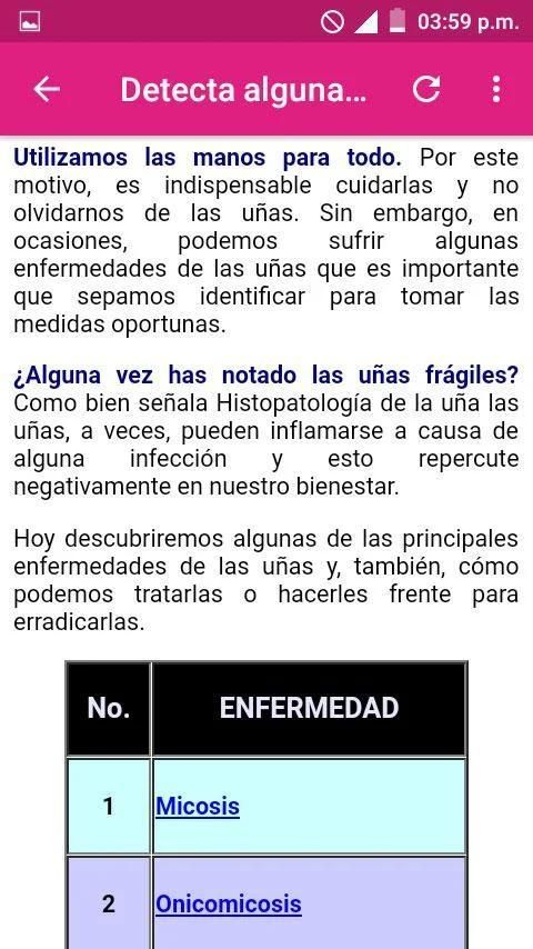 * Detecta alguna enfermedad en tus uñas: Micosis, onicomicosis, uñas encarnadas, descamación, estrías, leuconiquia, etc.