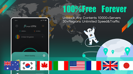 Accessing any blocked sites, games, apps & global video streaming will be faster and easier than ever with Hyper VPN. Hyper VPN is a 100% free VPN(There is no even paid entrance) with unlimited speed and data traffic. Games, sites, apps, video streaming or other content are blocked for various reasons, privacy leaks or slow internet, etc. If you have the above troubles, Hyper VPN is worth trying. Hyper VPN, a free VPN proxy, get connected quickly to unblock sites, protect WiFi hotspot secure and your privacy.