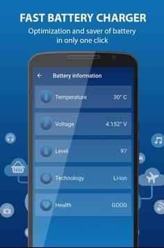 Real-time status of the battery – The Battery fast charger app shows you the present temperature of the battery, the battery voltage, and remaining battery charge.