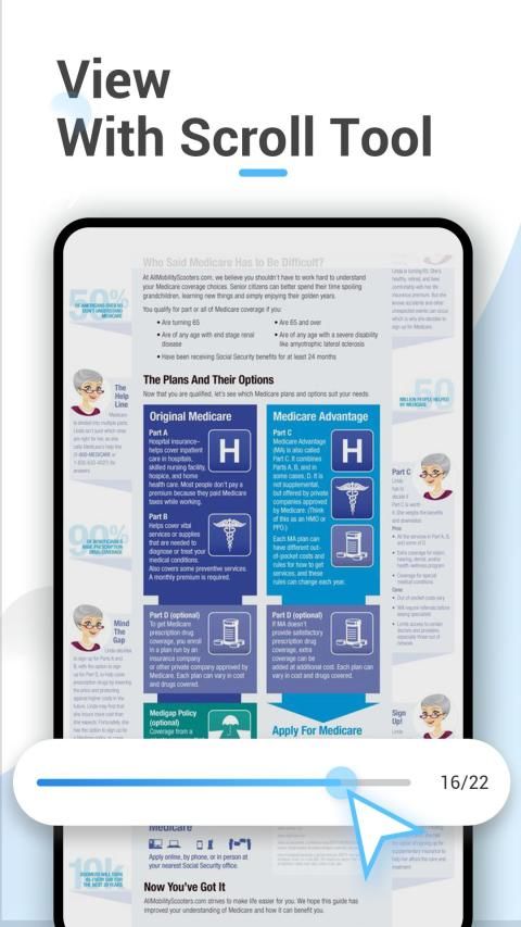 Easily view your PDF, ePub, and Word files, easily goto the page where you need it, and zoom in and out for easy reading.