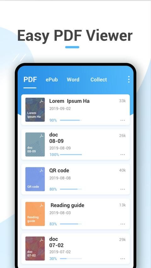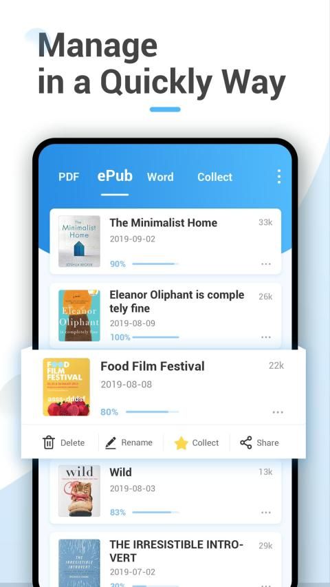 Quickly and comprehensively scan all the files on your computer, including PDF, ePub, Word files, and list them in the app, so you can manage them easily. When you have new files on your phone, they will also be updated in real time to let you find the latest files.