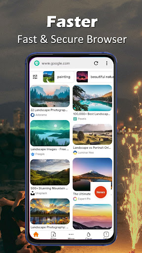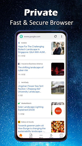 Browser Pro Fast & Secure is not just fast for Search, but designed so that you're one tap away from all your favourite content. You can tap on your favourite news sites or social media directly from the new tab page. Web Browser mini also has the 'tap to search' feature on most web pages. You can tap on any word or phrase to start a Search have selected engine while still in the page that you're enjoying.