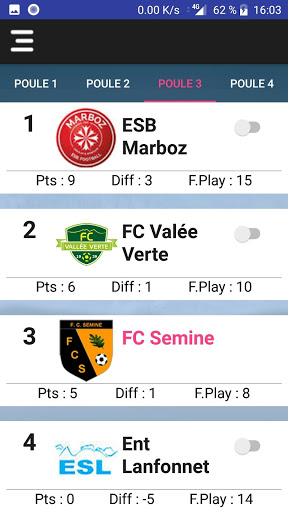 Visualisation des scores et classements en temps réel du tournoi se déroulant au FC Semine