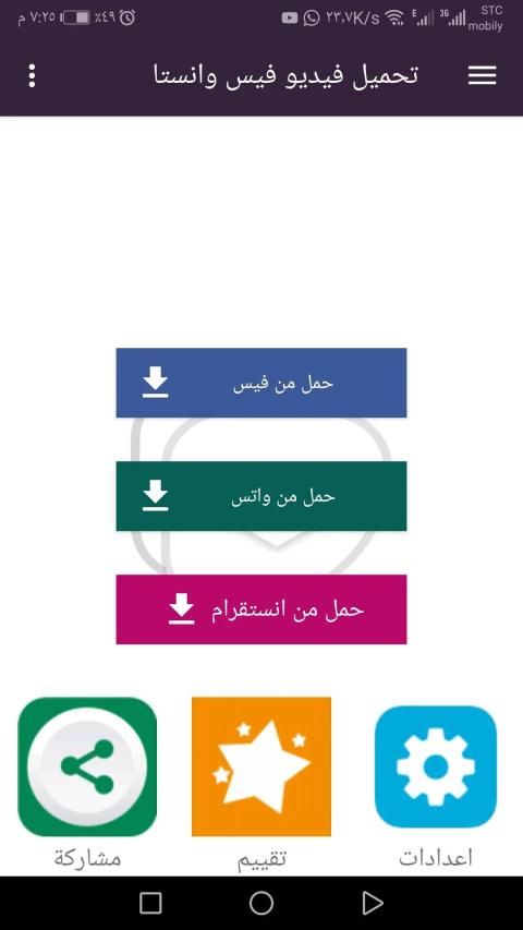 هذا التطبيق يقوم بتحميل الفيديو من الفيس - بوك و الانستا - جرام والواتس - اب تطبيق يغنيك عن التطبيقات الاخرى اعتمد هذا التطبيق في جميع تحميلاتك