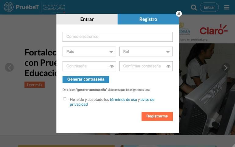 PruébaT es una plataforma en línea desarrollada por la Fundación Carlos Slim, cuyo