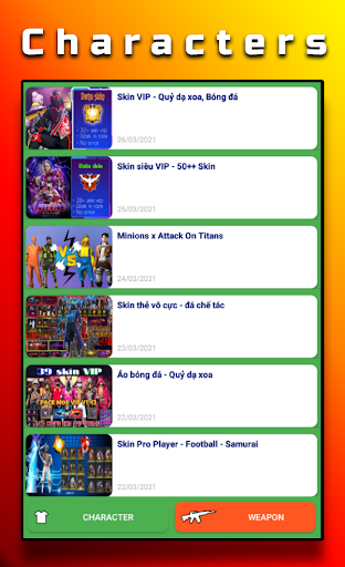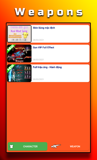 - Change skin character and weapon
