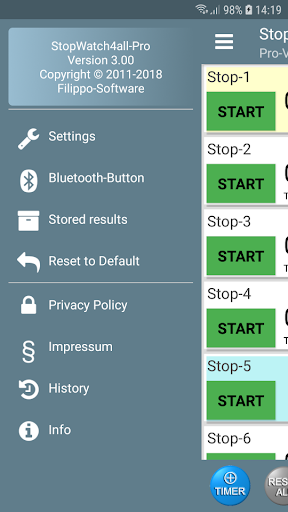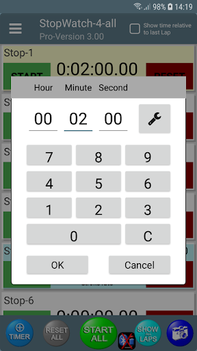 * In each stopwatch can record up to 3 laps, in the Pro-version no limit.
