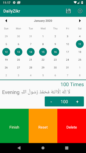 Daily Zikr is a simple app which allows you to count/tally any activity you wish. Can be used for Tasbeeh (prayer) or just general counting like a tally counter.