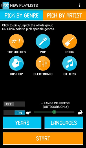 • Choose fitness music for the workout by genres, artists, countries, decades and specific years