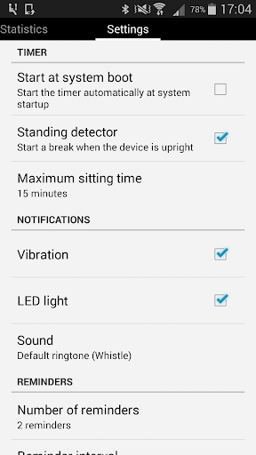 The app also knows when you are standing or walking. When you stand or walk for a while with the phone still in your pocket, the timer notifies you about the successful break. And the timer resets itself.