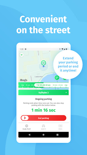 • On the streets, you park with the application without coins or cards, parking fees will be charged to your payment card afterwards.