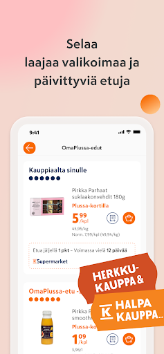 Kijk wat u koopt in de K-Shopping-service voor Plussa-klanten, u kunt de aankopen verkennen die u hebt gedaan bij K-Food-winkels en het binnenlandse en klimaatniveau van uw aankopen.Met de service -voedingsmeter kunt u ook bijhouden hoe gezond u eet.