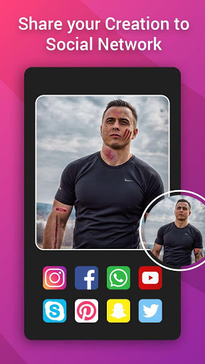 This fight photo editor is an excellent application in which you can show yourself in fight battle by changing your picture by making your face as face fight or blood-burning fights or make your hands as blood hands. And can show sprain harms.