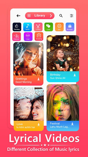 If you really wanna cool option to create your own videos with having beautiful effects like cool effects,slide effects,color effects,stylish effect on photo,unique animation with custom audio from gallery app,also lyrics video editing is our another new highlight for all lyrics video status maker and video status master.