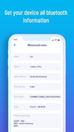 - Display details about device Bluetooth .(Bluetooth state, name, mac, discover mode, etc..)[New....]