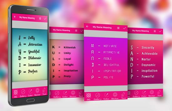 Name meaning Application help you to check what is behind your name and make a picture with your name meaning.The information in your name can reveal your destiny.
