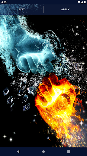 Fire & Ice Live Wallpaper 🔥 Flame & Ice Wallpapers is a hot fire wallpaper app with HD live wallpaper free, burning flames and frozen blue pictures, hot fire backgrounds, cold ice HD wallpaper, sparkling stars animation, multiple customize options like background changer, frames, animated sparkling stars, magic touch, analog clock, emoji, your name and more, that work on the lock screen and they are all FREE!
