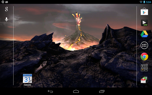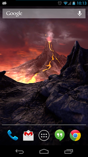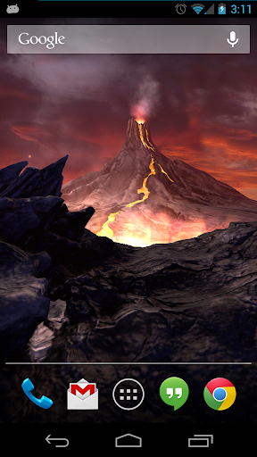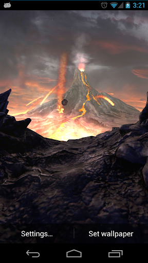 A spectacular 3D scene of fire and lava! Watch a distant volcano erupt with streams of lava, with a dramatic volcanic landscape in the foreground. Double-tap to summon fireballs and magma boulders! Fully supports both tablets and phones in any orientation, and supports lighting changes based on the current time of day!