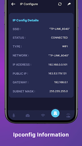 - In it, you will get the phone IP configuration details like SSID, Type, IP address, and other device information.