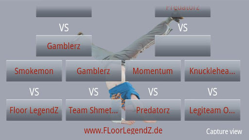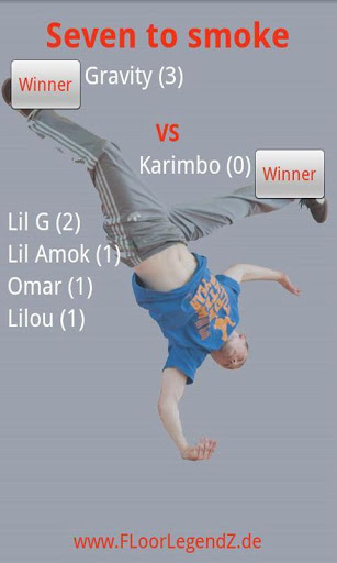 It is an application which can be used for all kinds of competitions where you have a knock out system or a system which is comparable to the "Ernie and Bert" mode or comparable to the "seven to smoke" mode. These are all competition modes which are common in hip hop and funk style dancing such as locking, popping, bboying / breakdance etc. A description of these modes can be found in the documentation of this app.
