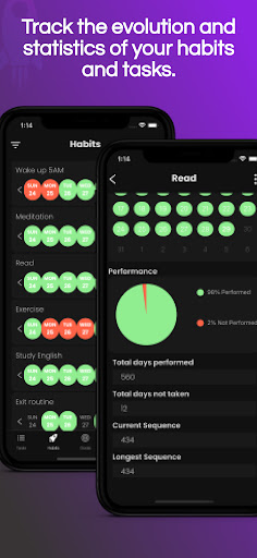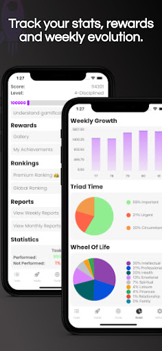 - Statistics on the percentage of tasks, habits and goals accomplished
