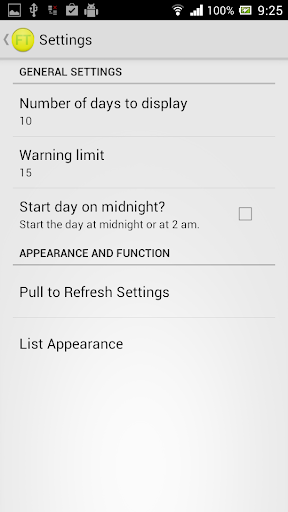 When switching to "landscape" mode you will get an overview of the next six days. Short- or long-pressing the title will result in the same actions as the clicks on the list in the "portrait" mode.
