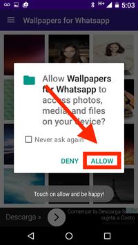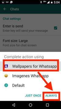 Background> Android System> icon Morado "Wallpaper for Whatsapp"> Always