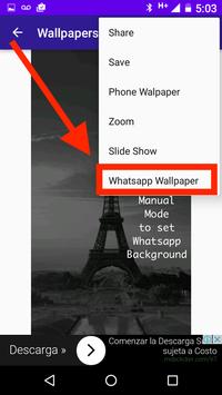 2. Select the background image to your liking at the 3 points and use the function that says "Whatsapp WALLPAPER"