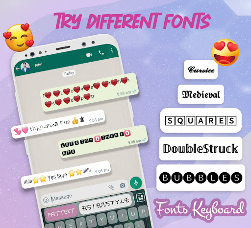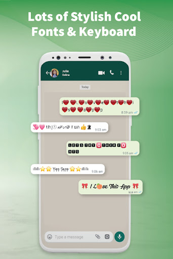 Get the beautiful and fancy stylish fonts keyboard and enjoy the communication with one another by using a chat style for WhatsApp. Express your words in the stylishly decorated text by using the chat style for WhatsApp keyboard application. Use chat style for WhatsApp keyboard app to make your all social media post stories & profile more attractive and get more likes.