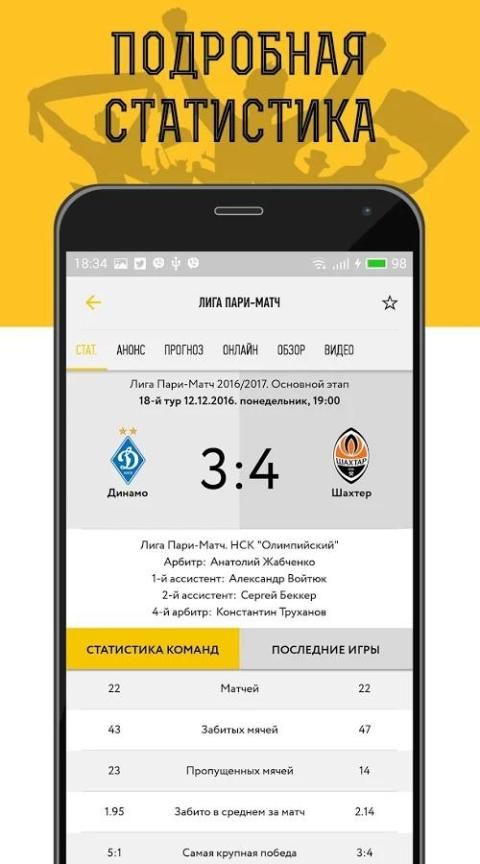 Football news in the annex provides a breakdown in the main, the general news feed and detail on the Ukrainian and world. Additional service given the opportunity to adjust the push-notifications for important news and predictions for the matches, which provide the necessary information, along with football statistics. In addition to news, the reader will find in the annex a lot of exclusive interviews, analytical articles and statistical collections c photos and infographics.