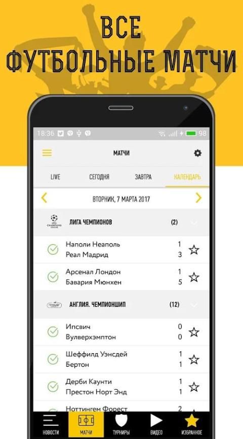 A useful service is the ability to customize the push-notifications to your liking. In addition to the notifications of major news and forecasts, games, every fan can add to "Favorites" any match from any tournament, only to personally for themselves configure notification events of the match, by a reminder of the start of the match for half an hour before the notification of the goals, cards, substitutions and post match penalty shoot-outs.