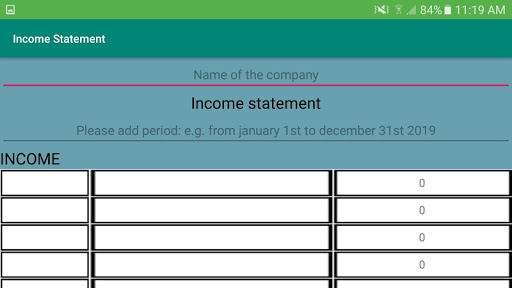 You can keep the accounting of a small and medium business. So this app gives you the opportunity to download a PDF of the Balance Sheet (Statement of Financial Position) or Income Statement (Statement of Profit and Loss) that you can use on any device and print it.