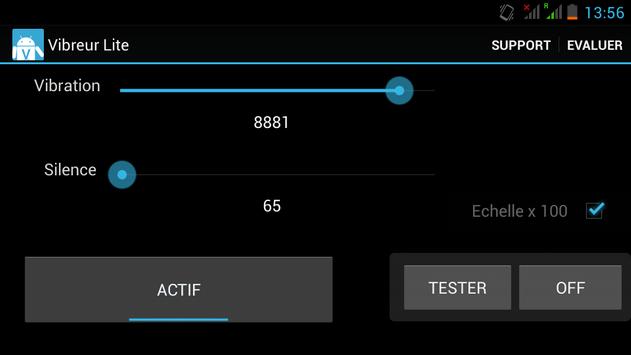 Une fois paramétré, il fonctionne uniquement lorsque le mobile est en position "vibreur" ou bien dans tous les modes sauf le mode silencieux si l'option est cochée. Lorsqu'un appel arrive, Vibreur Lite génère des vibrations de durée paramétrable à une fréquence paramétrable. La durée entre deux vibrations est paramétrable également.