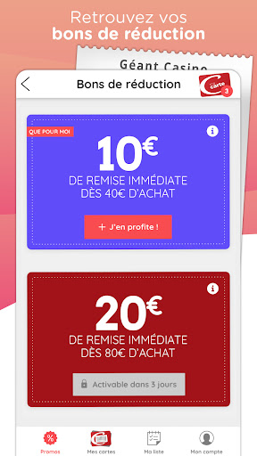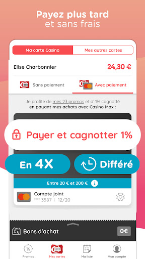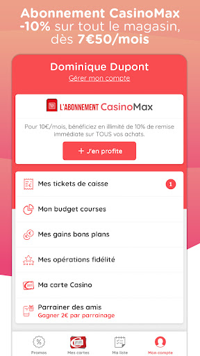 Gagnez du temps et évitez l’attente en caisse en payant avec votre smartphone, et retrouvez tous vos avantages et services dans l'appli : promos exclusives, bons de réduction, cartes de fidélité, cagnotte, tickets de caisse, catalogues, suivi du budget courses, listes de courses, abonnement Casino Max... Une appli TOUT-EN-UN qui simplifie vos courses en magasin.