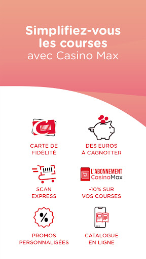 Bienvenue sur Casino Max, l’application gratuite de fidélité des enseignes Casino#hyperFrais et Casino Supermarché qui facilite vos courses.