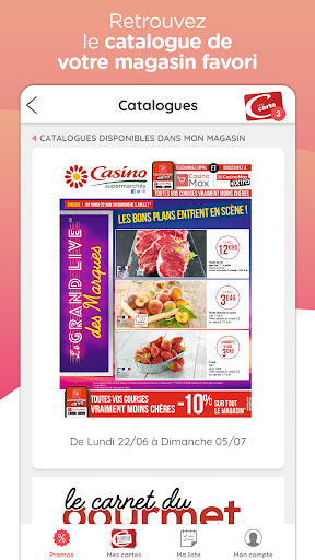 Retrouvez l’ensemble des catalogues disponibles chez Casino#hyperFrais et Casino Supermarché, et dans votre magasin préféré. A la maison ou au bureau, feuilletez les catalogues de votre magasin préféré depuis votre appli Casino Max.
