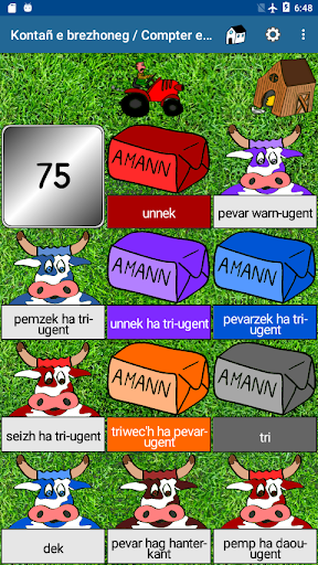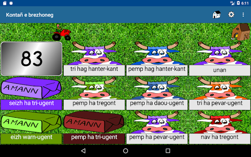 - Les vaches : un nombre en chiffres, trouvez la vache qui porte le nombre écrit en breton.